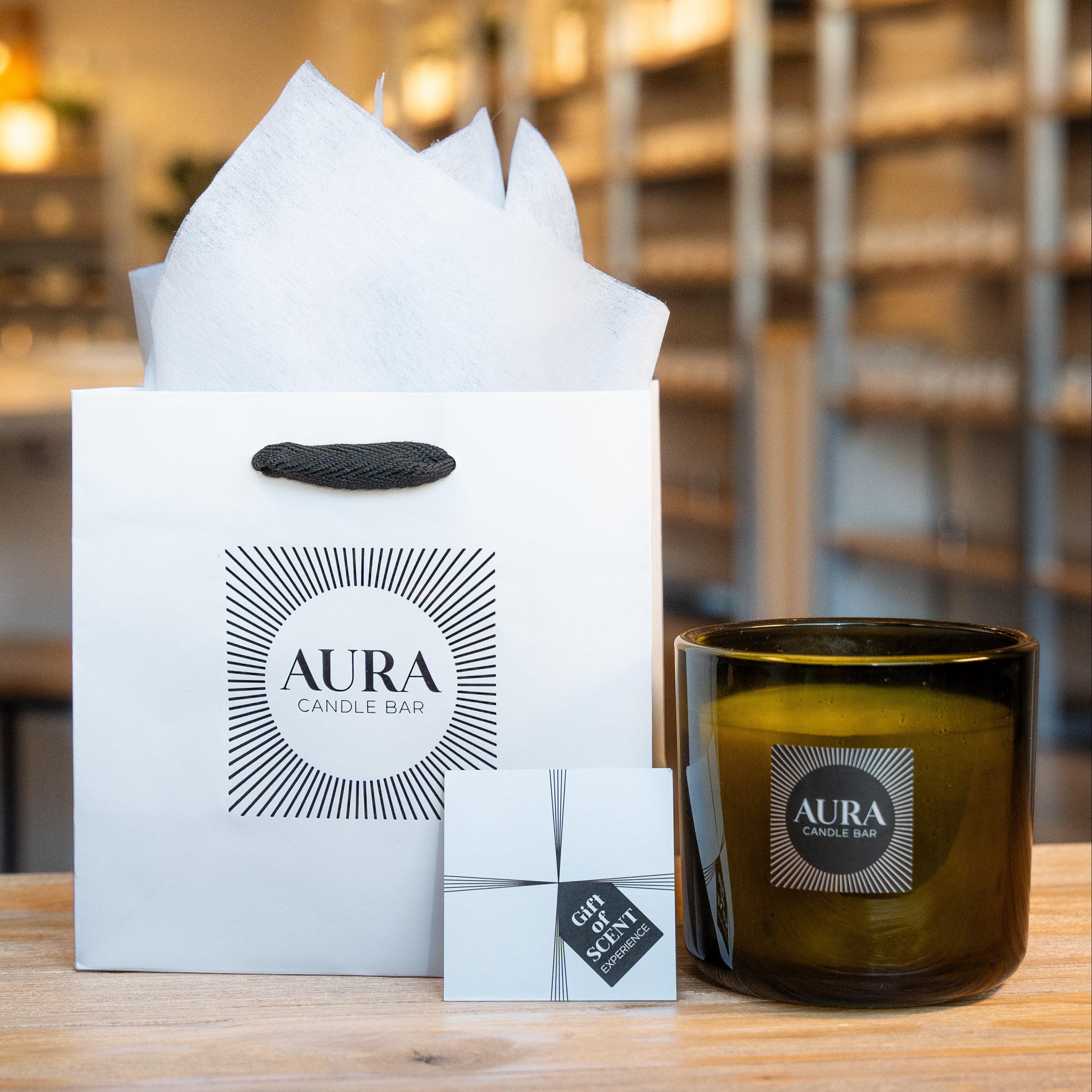 Begin your experience by exploring our fragranced candle wall of 110+ scents to find your favorites. Following, choose your favorite vessel that fits your style from the many we have on offer. Finally, settle into your reserved seat at our candle-pouring bar, where an AURA Scent Consultant will guide you step-by-step in creating your own custom fragrance blend to scent your candle or product of choice, including diffusers and wax melts. Each session lasts up to 1 hour and is designed to be immersive, creative, and uniquely yours.
